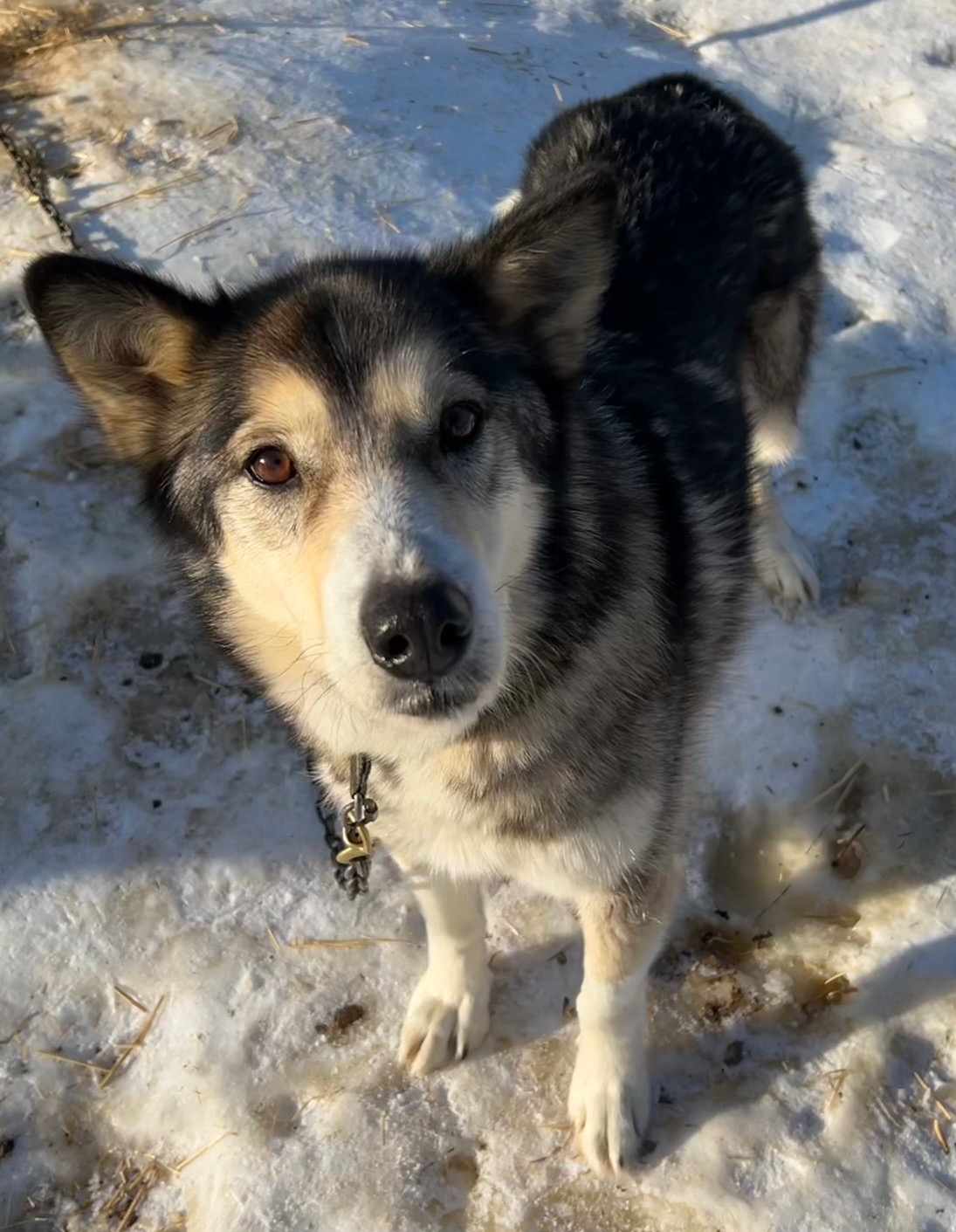 Zoe is a 2-year old Siberian/Alaskan mixed sled dog hailing all the way from Alaska! Her owner had to downsize his mushing team due to financial hardships and had to let Zoe go.